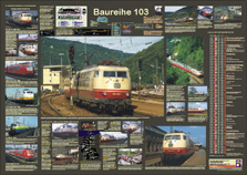 Unser Poster "Baureihe 103" zeigt die Masszeichungen mit den Bauplänen, alle Farbvarianten sowie eine vollständige Bestandstabelle der Baureihe 103 mit Abnahme- und Ausmusterungsdaten und letzter Farbgebung.
